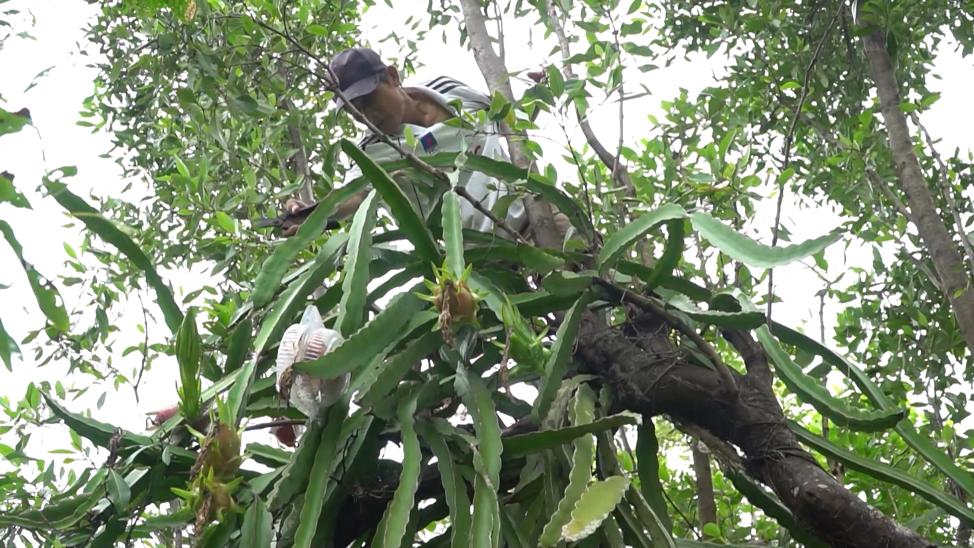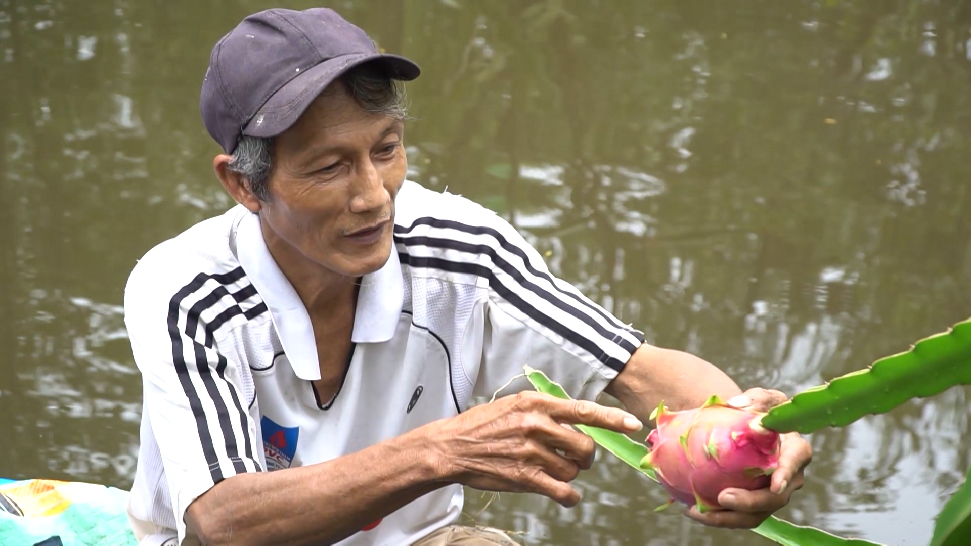 Ban đầu ông có ý tưởng trồng thanh long trên ao tôm kém hiệu quả… vậy là ông Phương lặn lội ra tận Bình Thuận để mua cây giống… Do không đủ vốn đầu tư đặt trụ xi măng, lão nông có sáng kiến buộc thanh long vào các cây tạp trong ao tôm như mắm, đước… Nhờ có giá thể bám vào nên cây không bị nước mặn làm ảnh hưởng, phát triển rất nhanh.“ Thấy tự nhiên ở quê mình có cây thanh long ngã xuống nước, nằm xuống mương nước mà nó sống được và cho trái cho bông. Phát hiện như vậy mới đem về trồng thử. Lúc đó trên bờ vuông toàn bộ là cây tạp thành ra mình không có trụ, lúc đó nghèo, không có vốn làm trụ được nên mình mới trồng đại vô các loại cây hiện tại trên bờ vuông có.” Ông Mai Lam Phương – Huyện Cái Nước, tỉnh Cà Mau chia sẻ.