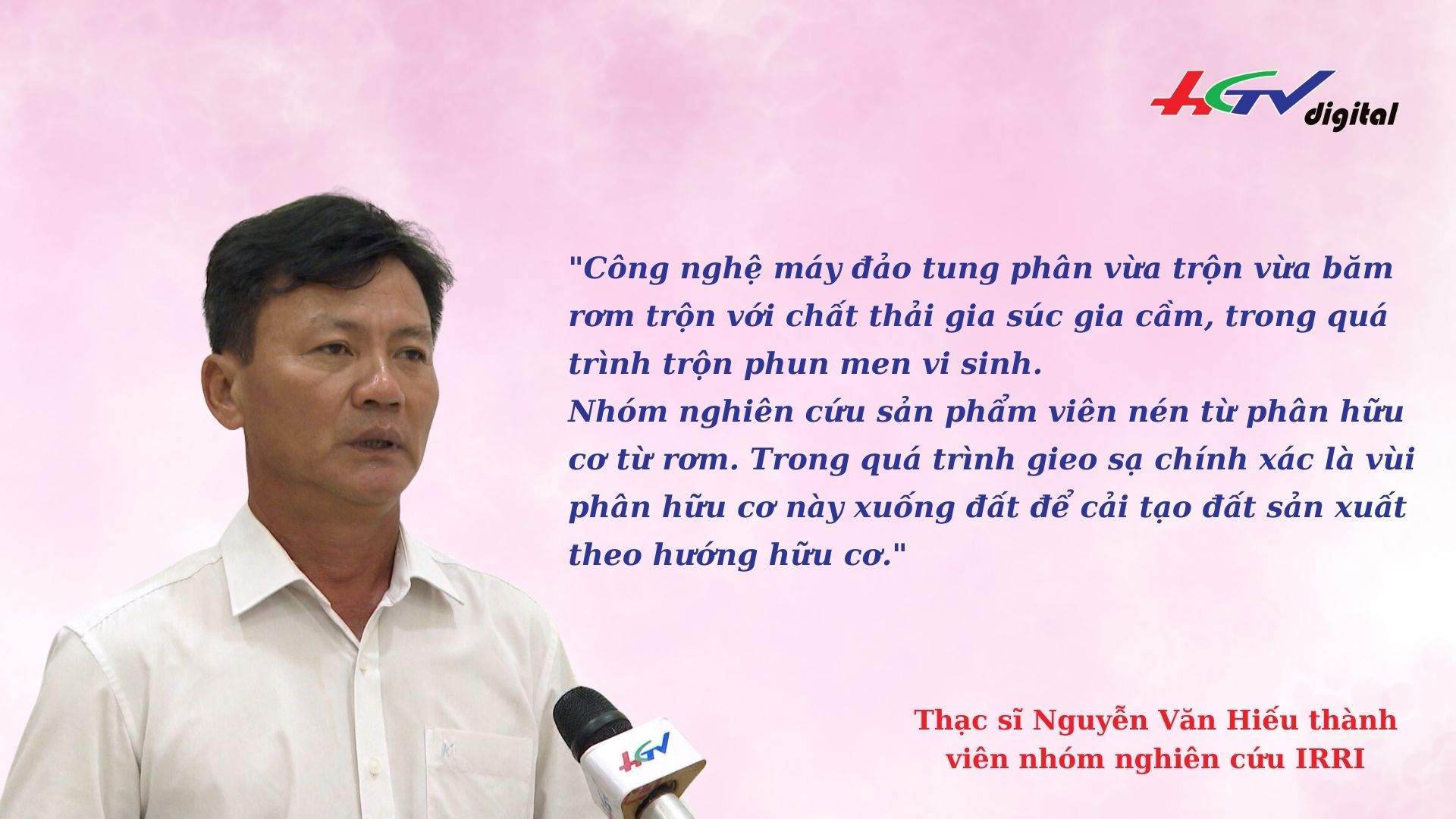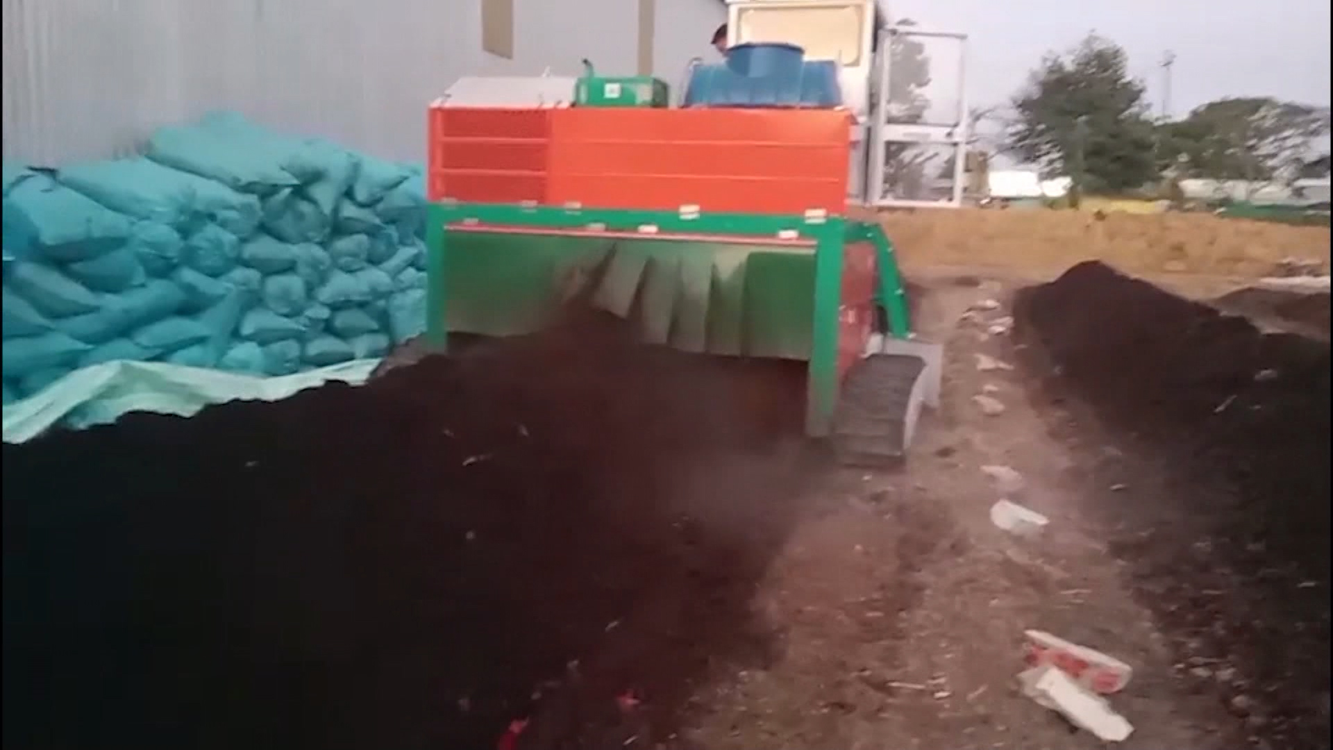 Mỗi 1ha lúa sau thu hoạch để lại 12 tấn phụ phẩm. Sau khi rời đồng ruộng, rơm được ủ mục trộn với men vi sinh. Máy đảo trộn có chức năng xử lý rơm thành phân bón hữu cơ, bón lại cho đồng ruộng và cây trồng.