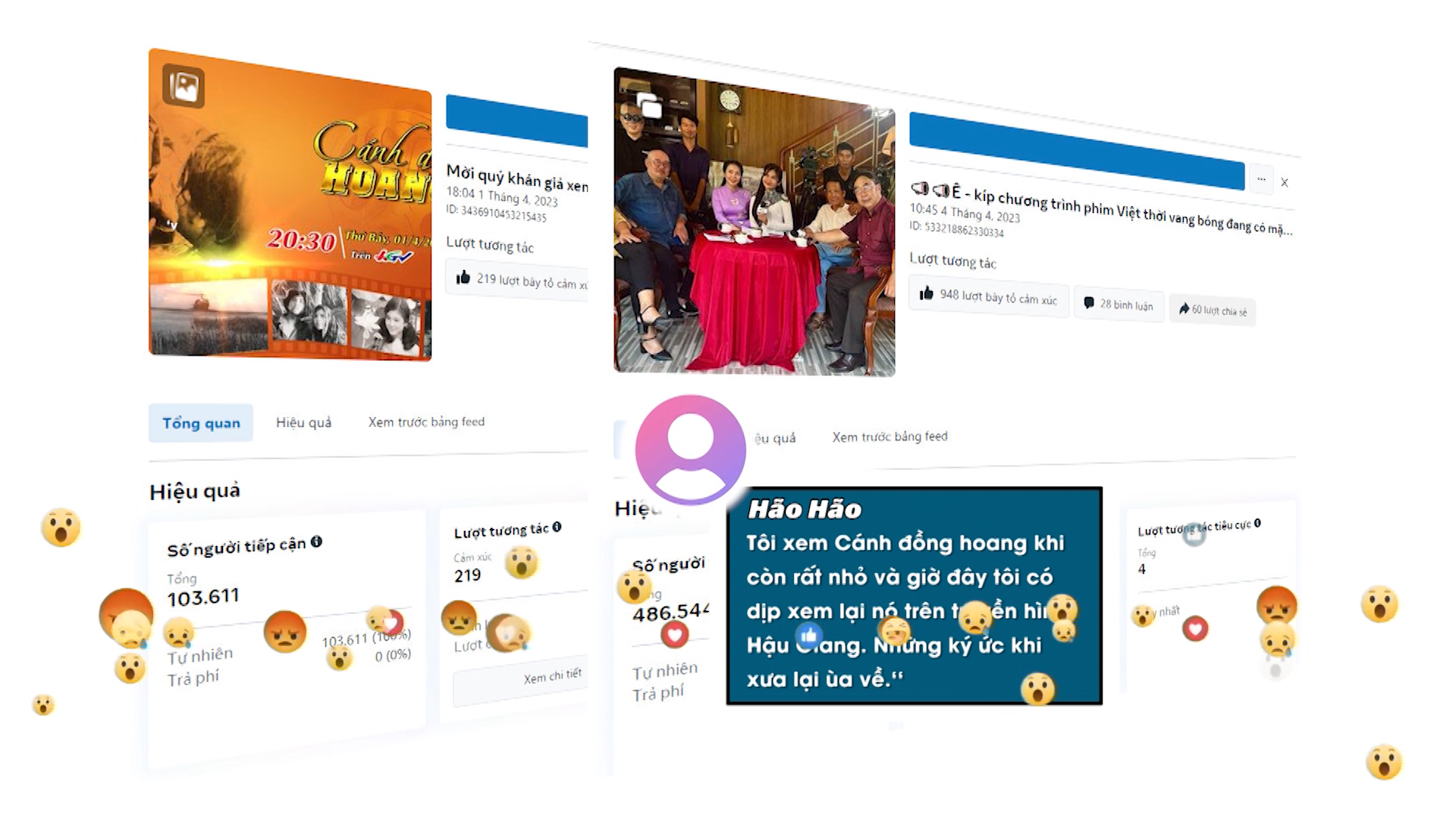 Trên nền tảng mạng xã hội của Truyền hình Hậu Giang các bài viết, video về phim Việt thời vang bóng có hơn 1 triệu lượt tiếp cận, tương tác từ khán giả với những lời tâm sự chân thành và xúc động.