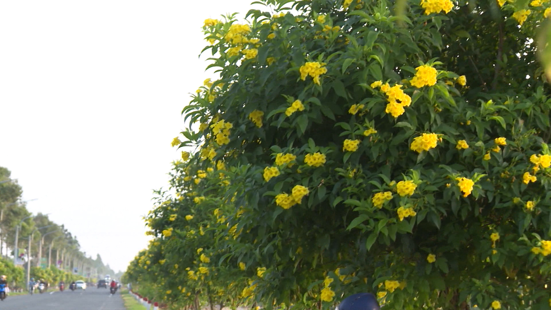 HGTV – Những ngày này, đi trên quốc lộ 61C, đoạn nối giữa thành phố Cần Thơ và Vị Thanh, tỉnh Hậu Giang, du khách dễ dàng bắt gặp hoa hoàng yến nở rộ, khoe sắc hai bên đường, làm khung cảnh thêm lãng mạn.