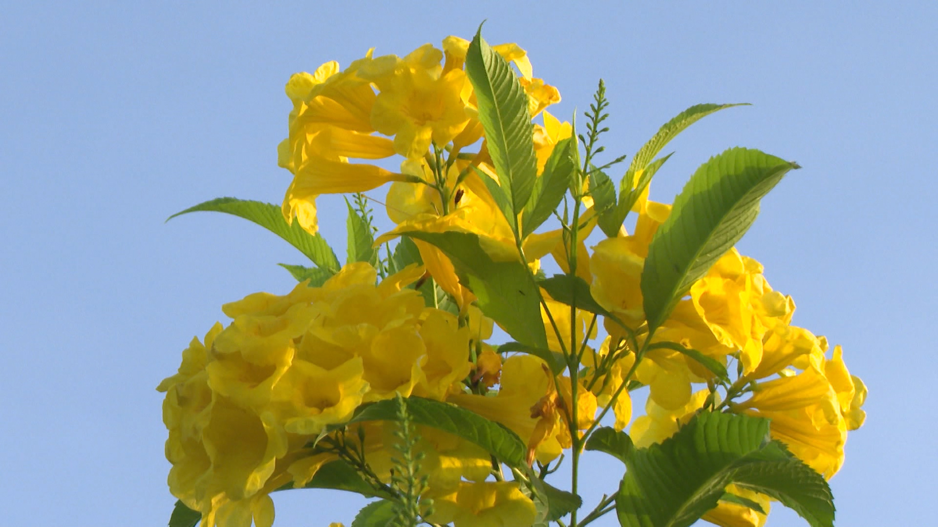 Hoa Hoàng Yến có nguồn gốc từ Châu Mỹ. Cây cao từ 2 đến 5m và thường nở quanh năm. Mỗi đợt hoa kéo dài hơn 1 tuần. Người dân tích cực chăm sóc, cắt tỉa cành, tạo cảnh quan đẹp mắt