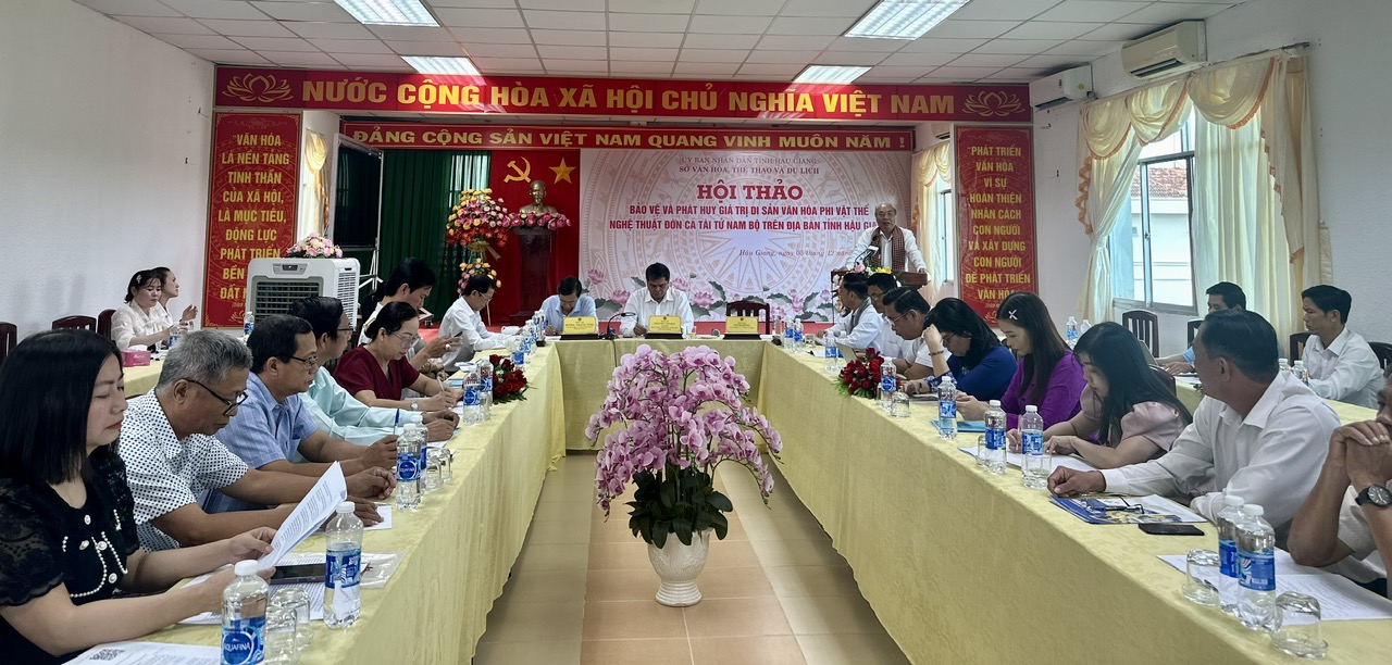 HGTV – Hơn 10 năm được UNESCO đưa vào danh mục di sản văn hoá phi vật thể đại diện của nhân loại, nghệ thuật Đờn ca tài tử ngày càng khẳng định giá trị và tầm ảnh hưởng trong đời sống, nổi bật nét đặc trưng, độc đáo của người và đất phương Nam. Sáng 5/12, Sở Văn hoá Thể thao và Du lịch tỉnh tổ chức Hội thảo Bảo vệ và phát huy giá trị di sản văn hoá phi vật thể nghệ thuật Đờn ca tài tử Nam bộ trên địa bàn tỉnh Hậu Giang. Dự có Lãnh đạo Sở Văn hoá Thể thao và Du Lịch tỉnh, các Nghệ sĩ, Nghệ nhân, Chuyên gia, Nhà nghiên cứu Văn hoá và Đờn ca tài tử Nam Bộ…
