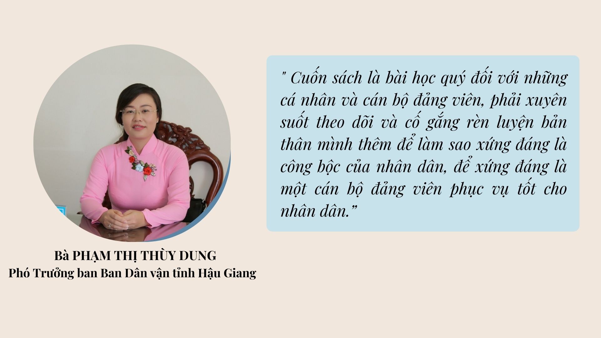 Các bài viết của tác giả đặt niềm tin vào Tổng Bí thư Nguyễn Phú Trọng. Dù rất đau lòng khi phải xử lý cán bộ của mình, nhưng kỷ luật một vài người là để cứu muôn người, từ đây góp phần quan trọng làm trong sạch đội ngũ cán bộ các cấp và củng cố vững chắc niềm tin của Nhân dân đối với Đảng.