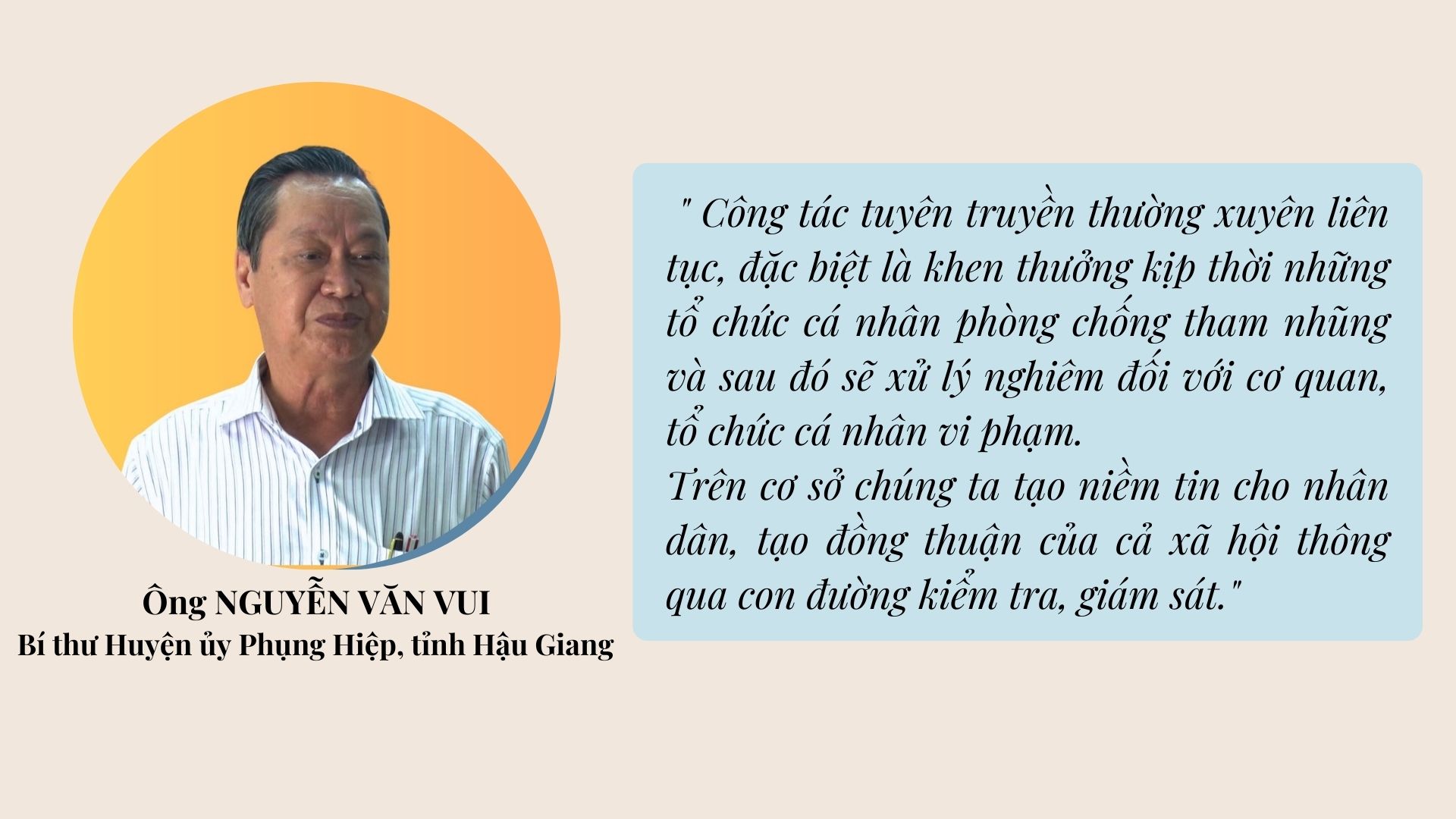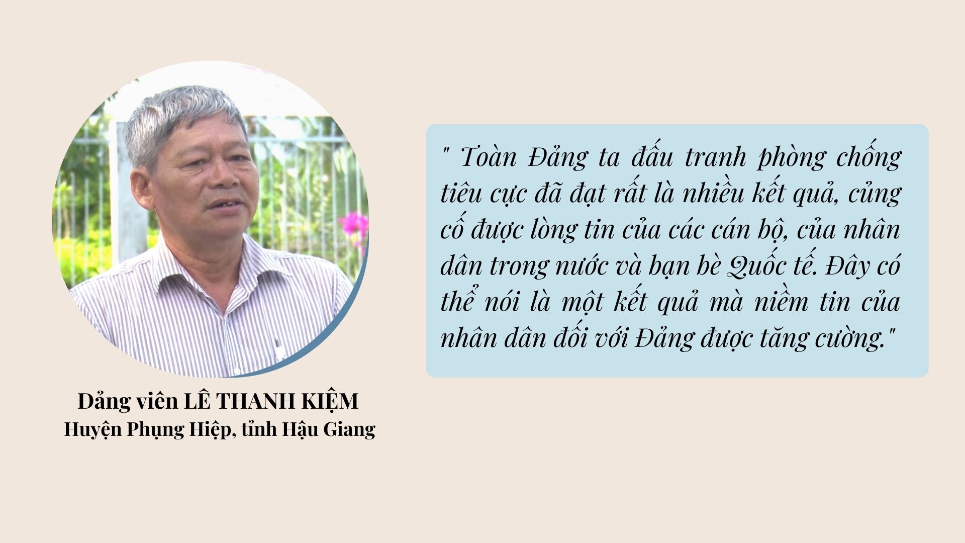 Tiến sĩ Nguyễn Thái Học – Phó Trưởng ban Ban Nội chính Trung ương chia sẻ: “Đồng chí Tổng Bí thư đưa ra rất là nhiều thông điệp. Một trong những thông điệp rất quan trọng đó là phương châm phòng chống tham nhũng, tiêu cực mà Tổng Bí thư từng đề cập đến. Đó là gì? Đó là đấu tranh phòng chống tiêu cực không nghỉ, không ngừng, không có vùng cấm, không có ngoại lệ dù bất kỳ đó là ai. Nó đặt ra cho tất cả các cấp, cách ngành trong xử lý tham nhũng. Đó là phải đảm bảo yếu tố công khai và minh bạch, công bằng, bất kể đó là ai dù ở cương vị lãnh đạo quản lý nào.”