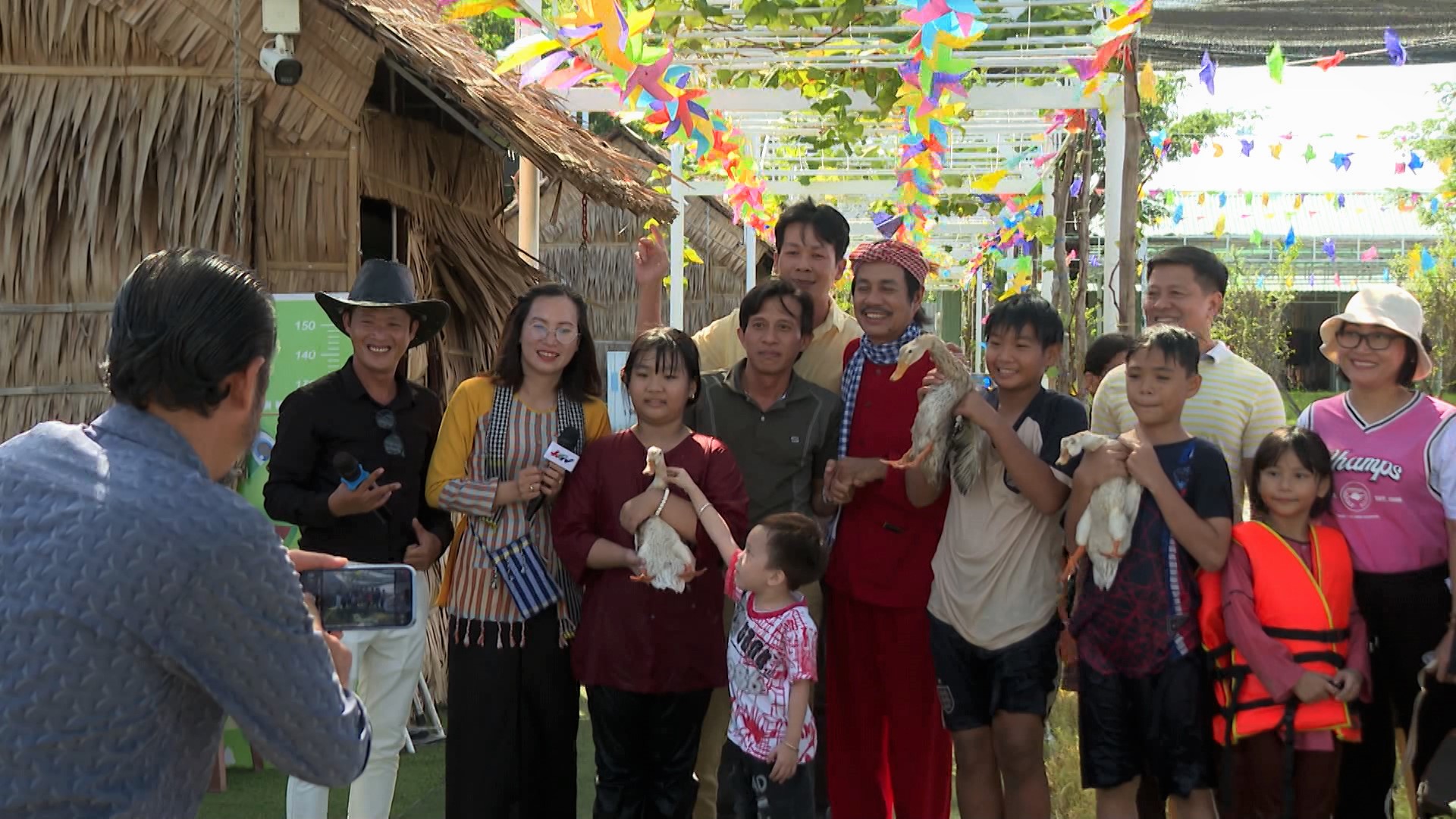 Nghệ sĩ Hữu Thạch chụp ảnh cùng du khách tại Khu Sinh thái Châu Đốc
