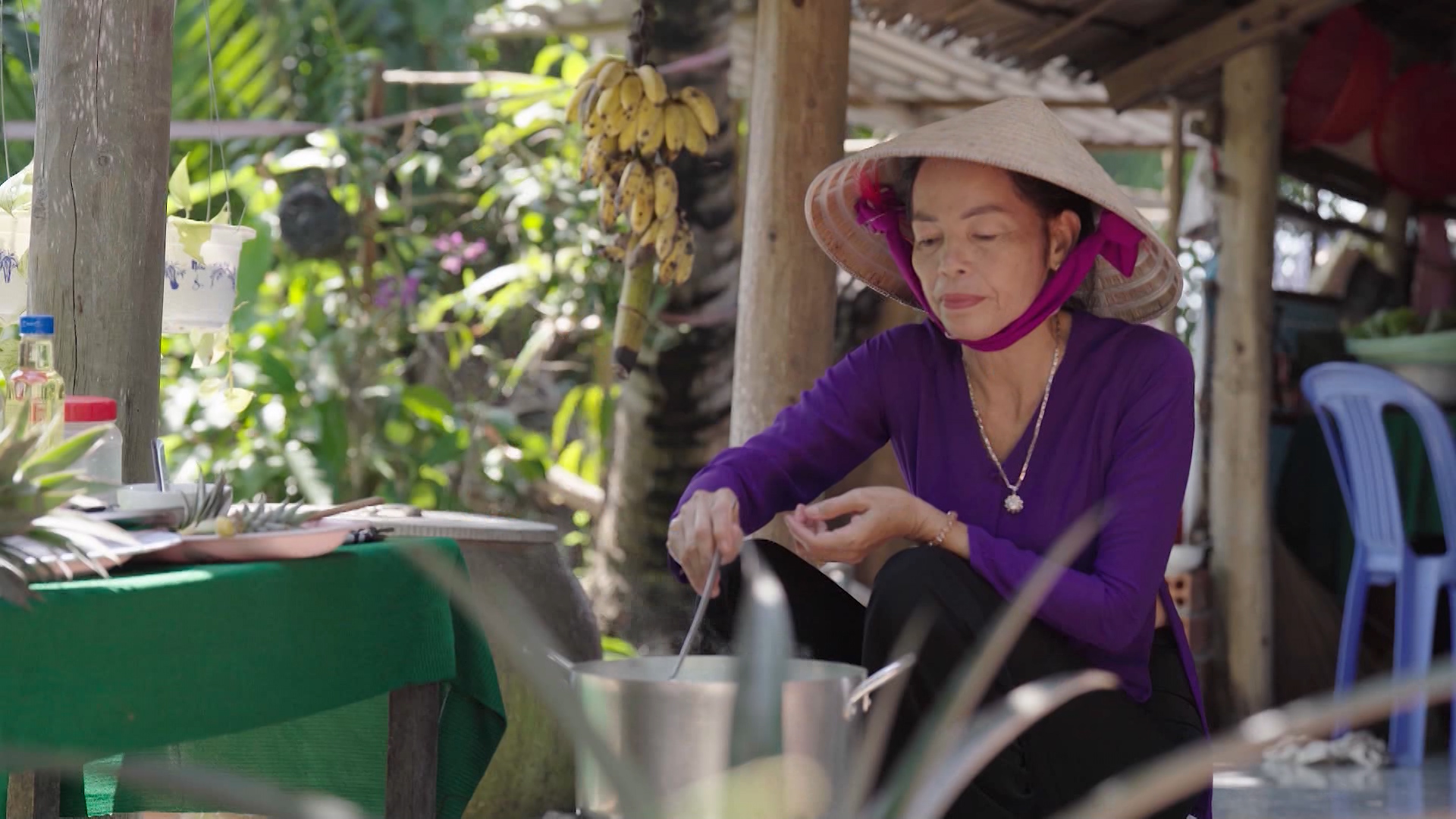 Nhưng câu chuyện về cây khóm Cầu Đúc không dừng lại ở trái ngọt hay món ngon. Giờ đây, còn đang mở ra những hướng đi mới đầy sáng tạo và bền vững. Quý vị có tưởng tượng được không, từ những chiếc lá khóm tưởng chừng bỏ đi này, người ta có thể tạo ra sợi tơ khóm để dệt vải?