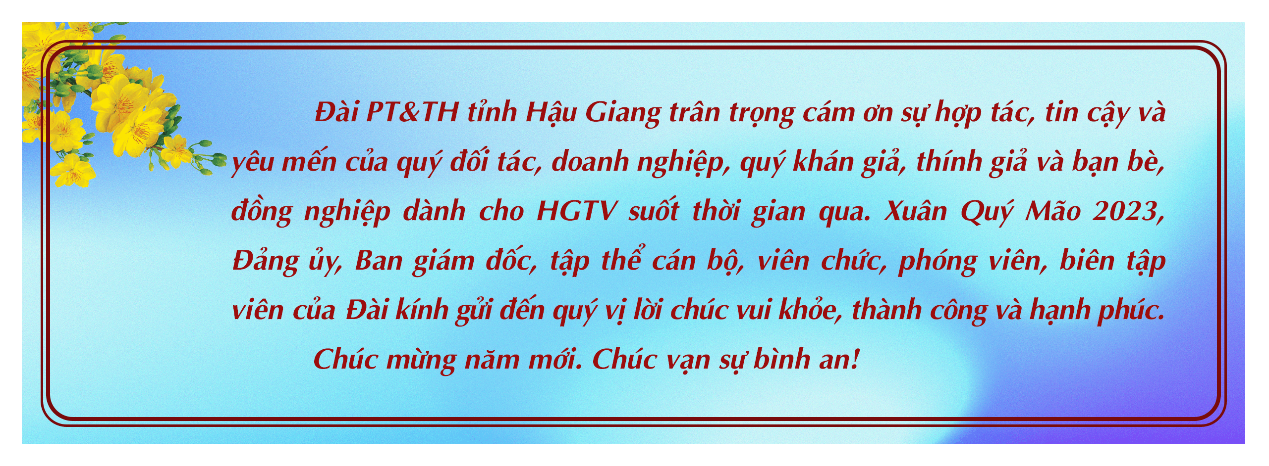 HGTV – Với phương châm “Đổi mới, đột phá, quyết tâm, khát vọng”, năm 2022, tăng trưởng GRDP của tỉnh Hậu Giang đạt 13,94%, đứng thứ 4 cả nước, tăng 35 bậc so với năm 2021. Tinh thần này của Tỉnh cũng là kim chỉ nam hành động, truyền cảm hứng cho Đài PT&TH Hậu Giang tiếp tục hành trình “Làm giàu tri thức – Kết nối cộng đồng”với những mùa xuân đong đầy trên cánh sóng…